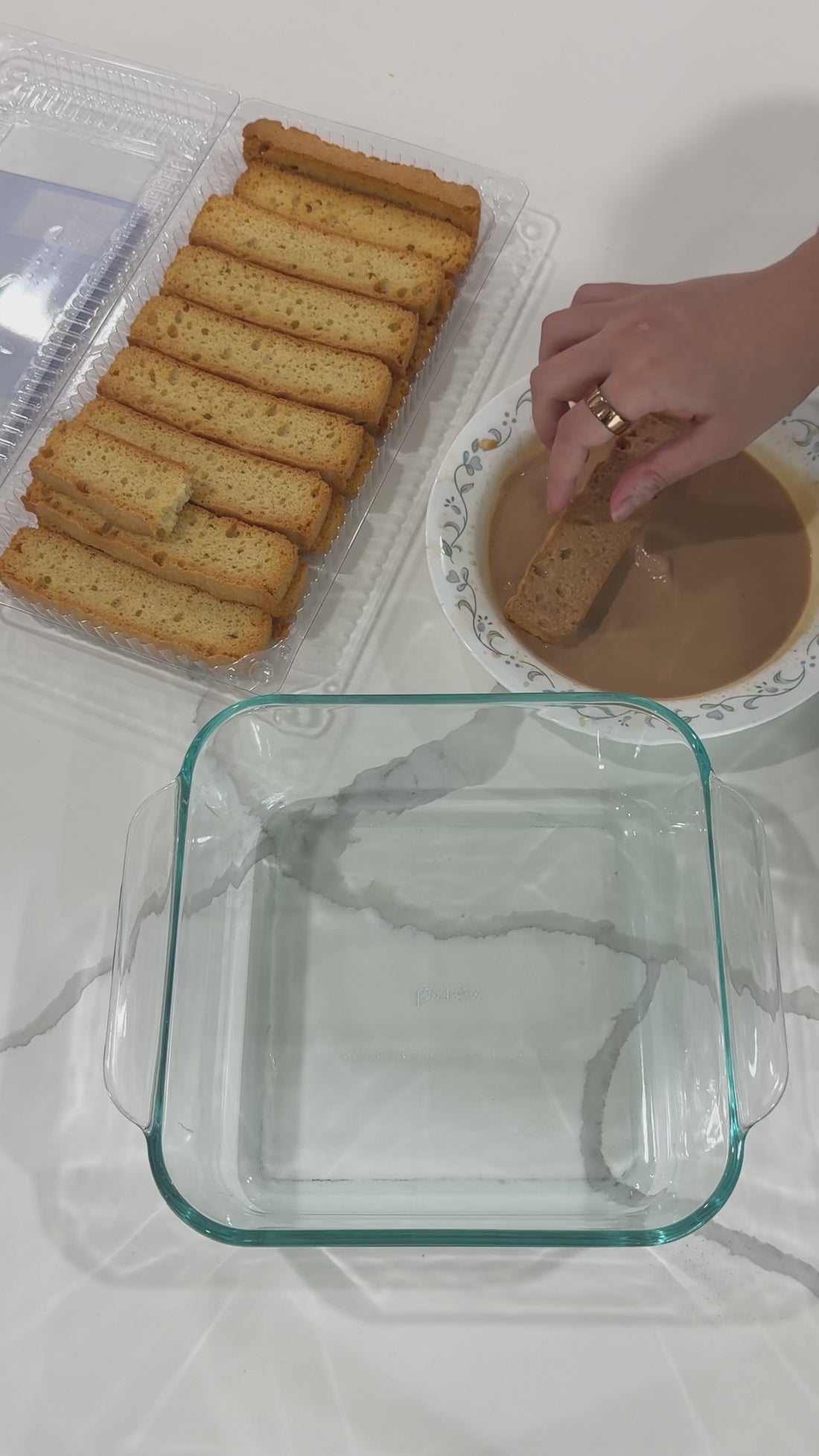 2. Base: Line the bottom of your pan with the dipped rusks.
